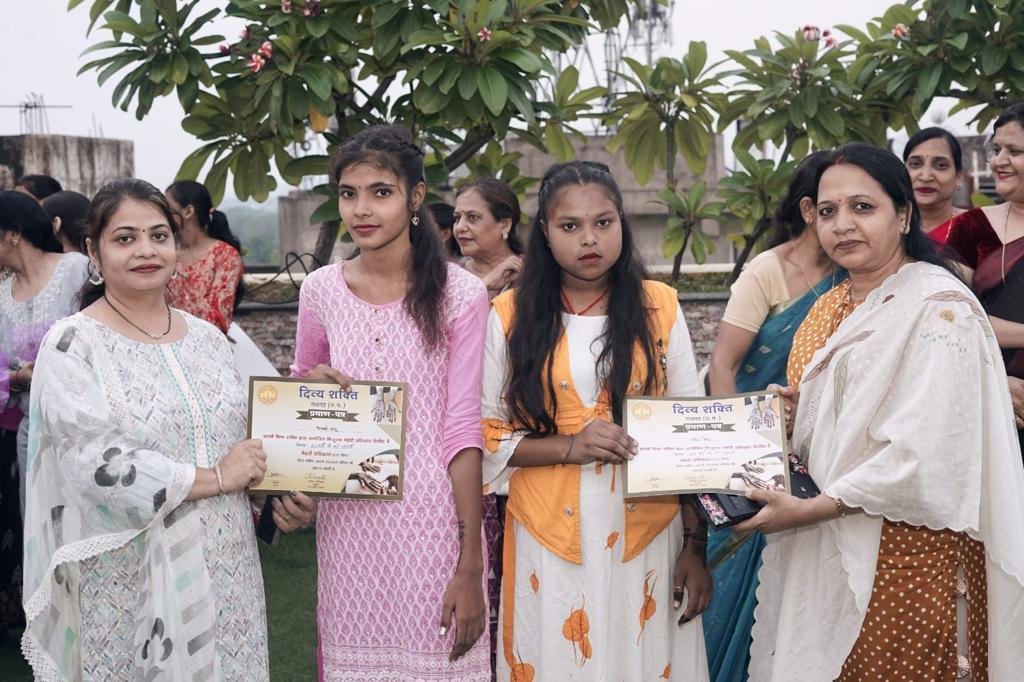 दिव्य शक्ति संस्थान प्रशिक्षण प्राप्त सभी लड़कियों को प्रमाण पत्र दिया तथा उनके उज्जवल भविष्य के लिए कामना भी की गई दिव्य शक्ति संस्था की सभी गणमान्य सदस्य भी उपस्थित रहे, सभी नारी शक्तियों के बीच यह कार्यक्रम का सर्टिफ़िकेट देकर समापन किया गया।