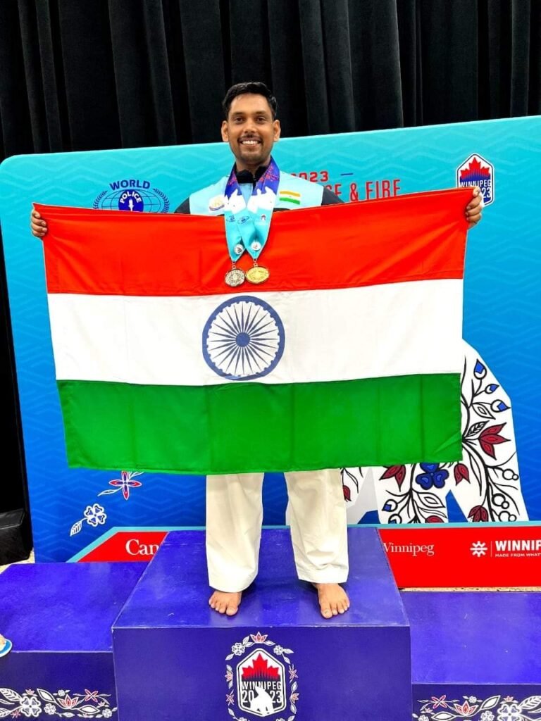 अंतराष्ट्रीय पुलिस गेम में बेहतरीन प्रदर्शन अम्बर भारद्वाज स्वर्ण पदक पर कब्जा करने पर नागरिक सुरक्षा सेवा संगठन ने बधाई दी।