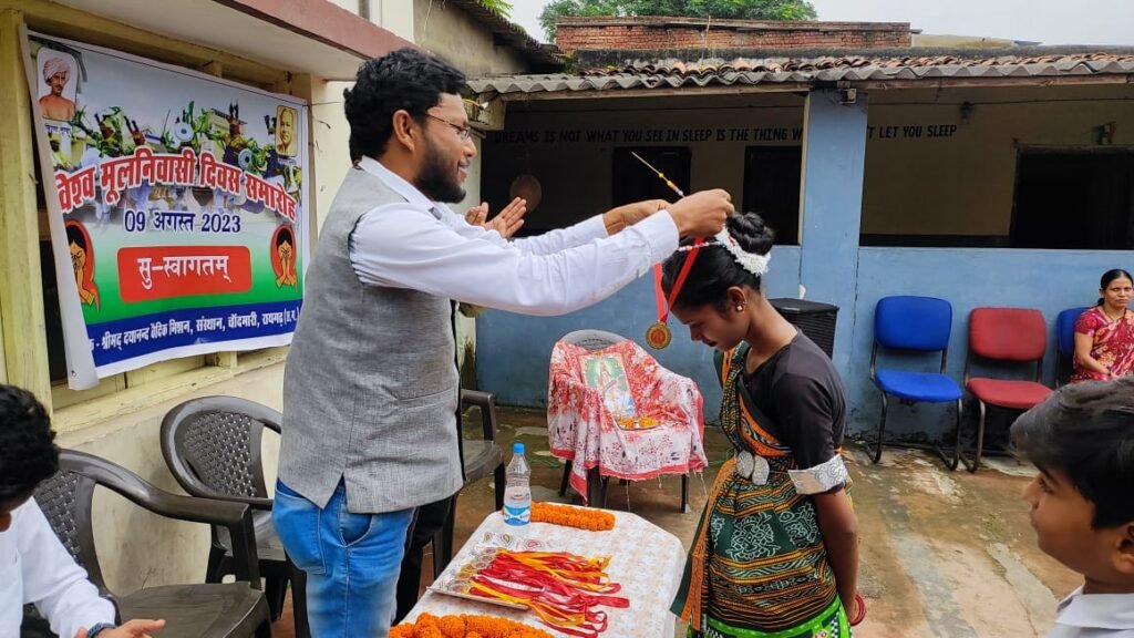 रायगढ़ / श्रीमद् दयानन्द वैदिक मिशन संस्थान द्वारा संचालित दयानन्द एंग्लो वैदिक स्कूल चांदमारी रायगढ़ मे विश्व मूलनिवासी दिवस पर रंगारंग कार्यक्रम का आयोजन किया गया जिसमे स्कूल के बच्चों ने फैसी ड्रेस प्रतियोगीता, भाषण प्रतियोगीता,निबंध लेखन प्रतियोगीता ,चित्रकला प्रतियोगिता, नृत्य प्रतियोगीता का आयोजन किया गया और विजेता प्रतिभागियों को इनाम भी वितरित किया गया । इस कार्यक्रम के मुख्य अतिथि श्री श्री गजेन्द्र सान्डे और श्रीमती अन्नू साहू जी की गरिमामयी उपस्तिथि में यह कार्यक्रम बहुत ही सफल रहा अपने उदभोषण में अन्नू साहू जी ने बच्चों को अच्छी शिक्षा हासिल करने और स्कूल का नाम रोशन करने की बात कही ।वंही समाजिक कार्यकर्ता गजेन्द्र सान्डे ने बच्चो को मूलनिवासी दिवस के इतिहास पर प्रकाश डाला जिस पर बच्चो और उपस्तिथ लोगों ने कहा की यह कार्यक्रम और इस दिन के बारे मे आज उन्हे पहली बार जानकारी मिली है।अन्त में संस्था के संचलाक श्री गौरव शर्मा ने अतिथियों और कार्यक्रम मे उपस्थित सभी लोगों का अभार व्यक्त किया इस कार्यक्रम को सफल बनाने में स्कूल की शिक्षिकाये रचना यादव, जया तिवारी, कुमुदनी सिदार, रुचिका यादव, रोशनी यादव, भावना मेहरा, गुड़ी यादव और विशेष कर अंशु बन्धन,नीहाल सहिस और पितेश्वरराज सिंह का सहयोग रहा।