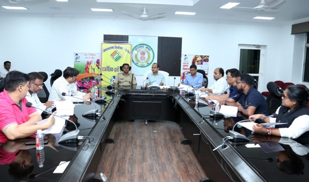 रायगढ़, 9 अक्टूबर 2023/ भारत निर्वाचन आयोग द्वारा छत्तीसगढ़ विधानसभा आम निर्वाचन-2023 के कार्यक्रम की घोषणा की जा चुकी है तथा निर्वाचन कार्यक्रम की घोषणा के साथ ही रायगढ़ जिले में 9 अक्टूबर 2023 से आदर्श आचार संहिता भी प्रभावशील हो चुकी है। कलेक्टर एवं जिला निर्वाचन अधिकारी श्री तारन प्रकाश सिन्हा ने आज कलेक्ट्रेट सभाकक्ष में राजनीतिक दलों के प्रतिनिधियों की बैठक लेकर जिले में निर्वाचन कार्यक्रम व आदर्श आचार संहिता के बारे में विस्तार से जानकारी दी। बैठक में वरिष्ठ पुलिस अधीक्षक श्री सदानंद कुमार व अपर कलेक्टर श्री राजीव पाण्डेय उपस्थित रहे।