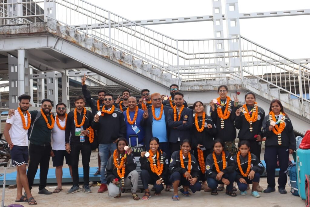प्रदेश टीम के साथ मिनी गोल्फ एसोसिएशन ऑफ छत्तीसगढ के प्रदेश सचिव भूपेन्द्र प्रसाद,टीम मेनेजर हेमंत खुटे,महिला टीम की कोच कल्पना स्वामी तथा पुरुष टीम के कोच राणा अजय सिंह टीम के साथ गोवा शिरकत किए थे। नेशनल गेम्स में पदक लेकर रायपुर आने पर रेलवे स्टेशन पर टीम के सभी सदस्यों का गाजे बाजे के साथ जोशीला स्वागत मिनीगोल्फ एसोसियेशन ऑफ छत्तीसगढ़ रायपुर इकाई के विशाल पोपट व जयेश के द्वारा किया गया। टीम की इस शानदार उपलब्धि से निश्चित रूप से नवोदित खिलाड़ियों का मनोबल बढ़ेगा तथा प्रदेश के खिलाड़ियों का हौसला बढ़ेगा।