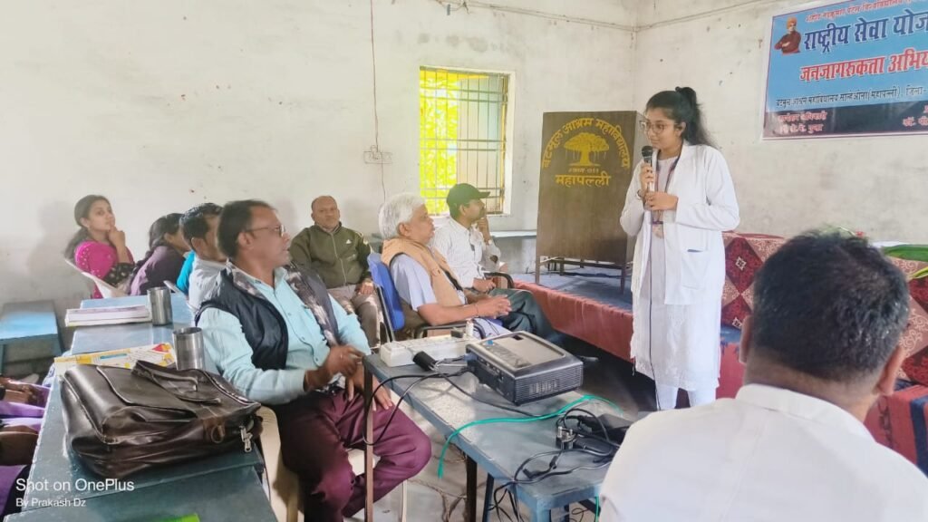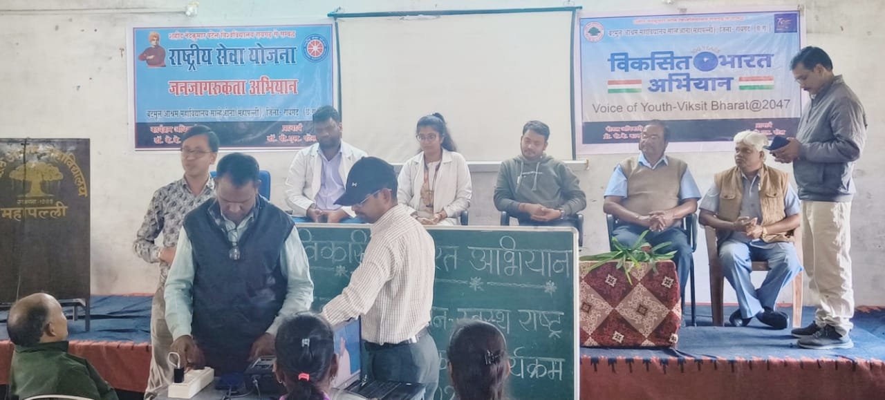 महापल्ली:- रायगढ़ पूर्वांचल में स्थित बटमूल आश्रम महाविद्यालय साल्हेओना, महापल्ली के प्राचार्य डॉ.पी.एल. पटेल एवं महाविद्यालय संचालन समिति के अध्यक्ष श्री एन.आर. प्रधान के मार्गदर्शन तथा विकसित भारत अभियान के नोडल अधिकारी प्रो. पी.के. कापड़ी एवं रासेयो कार्यक्रम अधिकारी डॉक्टर के.के. गुप्ता के नेतृत्व में विकसित भारत अभियान के प्रचार प्रसार के अंतर्गत बटमूल काॅलेज में दिनांक 04 जनवरी 2024 को महाविद्यालय के सभागार में स्वास्थ्य जागरूकता कार्यक्रम का आयोजन किया गया। सर्वप्रथम विकसित भारत अभियान के नोडल अधिकारी प्रो. पी.के. कापड़ी एवं एन.एस.एस. कार्यक्रम अधिकारी डॉ. के.के. गुप्ता व रेडक्रॉस प्रभारी डॉ. व्ही.के. गुप्ता द्वारा विकसित भारत@ 2047 अभियान पोर्टल में रजिस्ट्रेशन हेतु छात्र-छात्राओं को प्रेरित करते हुए अतिशीघ्र अपना पंजीयन कर फीडबैक देने के लिए आग्रह किया गया। नोडल अधिकारी कापड़ी जी ने कहा स्वस्थ तन, स्वस्थ मन एवं स्वस्थ राष्ट्र से ही राष्ट्र विकसित हो सकता है अतः हमें अपने राष्ट्र को विकसित बनाने के लिए हमें स्वस्थ रहना बहुत जरूरी है इसीलिए आज स्वास्थ्य जागरूकता कार्यक्रम का आयोजन किया जा रहा है। महाविद्यालय के प्राचार्य डॉक्टर पी एल पटेल ने छात्र-छात्राओं से आग्रह किया कि फास्ट फूड, जंक फूड सेवन करने से बचना चाहिए बल्कि हरी साग सब्जी एवं फलों का सेवन करना चाहिए। उक्त कार्यक्रम में मेडिकल कॉलेज रायगढ़ के चिकित्सक डॉ. रोशन कुमार अग्रवाल एवं डॉ. श्रेयाशी झा, द्वारा हमारे रहन-सहन, दिनचर्या, खान-पान, लाइफस्टाइल से संबंधित विस्तृत जानकारी छात्र-छात्राओं देते हुए यह बताया कि एक स्वस्थ जीवन जीने के लिए हमें किस प्रकार की लाइफस्टाइल के साथ जीवन यापन करना चाहिए। उक्त कार्यक्रम का संचालन प्रो.पी.के. कापड़ी एवं आभार व्यक्त महाविद्यालय संचालन समिति के अध्यक्ष श्री एन.आर. प्रधान द्वारा किया गया। उक्त कार्यक्रम में महाविद्यालय के प्राचार्य डॉ. पी. एल. पटेल, महाविद्यालय के वरिष्ठ प्राध्यापक प्रो. पी.के. कापड़ी, प्रो. पी.के. गुप्ता, डॉ. के.के. गुप्ता, डॉ. विक्रांत गुप्ता, डॉ. गीता देवांगन, प्रो. नीलकंठ निषाद, प्रो. संगीता आदित्य, प्रो. प्रज्ञा विश्वाल, प्रो. साक्षी शुक्ला, प्रो. होमेश्वरी साहू, प्रो. रीना भोय, प्रो. किरण पटेल, निशांत पण्डा, अनुप्रिया गुप्ता, त्रिलोचन बरेठ, गोपेश प्रधान, सुमन किसान, यमुना मेहरा, सुशीला यादव, मेडिकल कॉलेज रायगढ़ के डॉ. प्रवीण मोदी, डॉ. किशोर पटेल तथा महाविद्यालय के समस्त छात्र-छात्राओं की सक्रिय भागीदारी रही। उक्त जानकारी महाविद्यालय के मीडिया प्रभारी डॉ. के.के. गुप्ता ने दी।