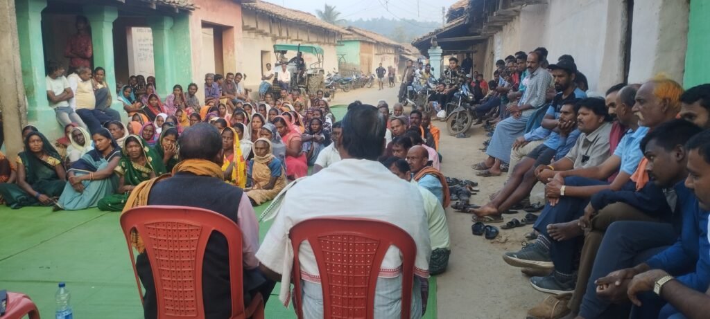 रायगढ़ तमनार दिनांक 10/01/2024 को रायगढ़ जिले तहसील तमनार ग्राम पेलमा के बीच बस्ती में एस ई सी एल कोयला खदान से कोयला परिवहन के लिए रेलवे कॉरिडोर के संबंध में बैठक रखी गई जिसमें रमेश मोर एस डी एम घरघोड़ा रिचा सिंह तहसीलदार तमनार आशिर्वाद टी आई तमनार व रेल्वे लाइन के कर्मचारी द्धारा बैठक की गई इस बैठक में सामाजिक कार्यकर्ता राजेश त्रिपाठी व भारी संख्या में ग्रामीण शामिल ग्रामीणों द्वारा कोई समर्थन नहीं किया गया और किसी प्रकार का कोई निर्णय एसईसीएल के लिए रेल्वे लाइन के पक्ष में नहीं दिया गया है सभी अधिकारियों ने रेलवे लाइन बनाने के फायदे पर बात की और क्षेत्र एवं देश पर किस प्रकार से लाभ होगा इस पर भरकश प्रयास किया कि ग्रामीण इस रेल लाइन के लिए हमी भर दें और बचे हुए काम को करवाने दिया जाए परंतु ग्रामीणों द्वारा इस पर सहमति नहीं दिया गया क्योंकि संविधान तथा पेसा कानून से प्रदत्त शक्तियों का यहां पर उल्लंघन होता दिख रहा है यहां जल जंगल जमीन और खास करके पर्यावरण को इस रेल लाइन के बनने से प्रभाव होगा जिसमें अत्यधिक मात्रा में पेड़ों की कटाई की जाएगी और क्षेत्र में कई प्रकार के जीव जंतु निवास करते हैं जिनके जीवन यापन पर भारी प्रभाव पड़ेगा खाद्य श्रृंखला पूर्ण रूप से बाधित होगी जलवायु परिवर्तन के लिए यह नुकसान प्रद होगा आदिवासी बाहुल्य क्षेत्र में जंगलों पर आश्रित लोगों पर उनकी आजीविका पर यह पूर्ण रूप से प्रभावित करेगा इन सभी मुद्दों को देखते हुए ग्रामीणों ने इस पर किसी प्रकार की कोई सहमति नहीं जताई है तकरीबन डेढ़ से 2 घंटे की चर्चा पर कोई रिजल्ट नहीं निकलने से प्रशासनिक अधिकारियों को गांव से वापस लौटना पड़ा इस मीटिंग में गांव के मुख्य रूप से चक्रधर राठिया, बंशीधर नायक, बबलू पटेल, किरपा राठिया, सुखसागर राठिया, प्रेम सिंह राठिया, मुरली नायक,बंशीधर राठिया, राम दुलारी नकुल राठिया, भानु राठिया, रामनाथ राठिया, गोपाल पटेल, राजु पटेल, टिकेश्वर राठिया, दुयोधन गुप्ता, महदेव गुप्ता, शांति लाल राठिया, अक्षय नायक, शिव पटेल, मेहत्तर राठिया, गोकुल राठिया, सामिल रहे