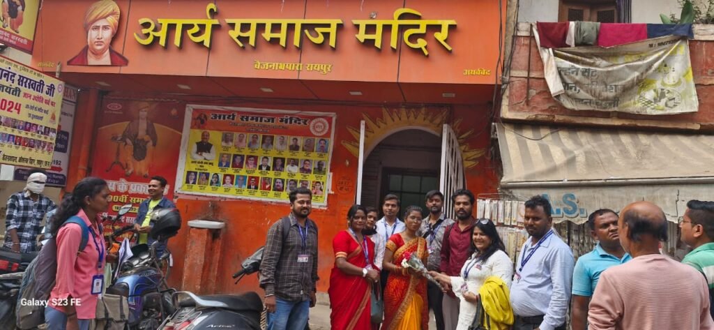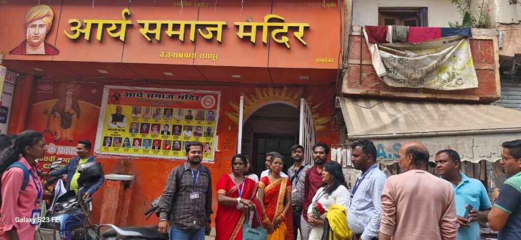 रायपुर / नागरिक सुरक्षा सेवा संगठन रायपुर बैठक छत्तीसगढ़ महिला अध्यक्ष आरती सिंह की गरिमामय उपस्थिति में सम्पन्न हुआ जिसमें सभी पदाधिकारियों सदस्यों को अपने उद्बोधन कहा कि हमारे संस्थापक श्याम गुप्ता जी के मार्गदर्शन उनके अच्छे सोच पर चलती हूँ वो हमेशा कहते हैं कि भले ही 10 कसूरवार बच जाए पर एक निर्दोष को सजा नहीं होनी चाहिये और आपके पास जो रायपुर के लड़के दुर्ग की लड़की के कुछ सालों से सोशल मीडिया के माध्यम एक दूसरे के करीब आने फिर विवाद होने के कारण पहले से लड़की के बच्चा होना पाया गया जिसमें लड़के का लड़की को सिर्फ दोस्त मानने और शादी नहीं करने की बात की जिससे मामला थाने तक पहुंच गया था जिसे संगठन ने महिलाध्यक्ष आरती सिंह टीम के साथ बीच के माध्यम बनते हुए दोनोँ पक्षों में आपसी सहमति करवाकर शिकायत वापस लेते हुए नागरिक सुरक्षा सेवा संगठन के संस्थापक श्याम गुप्ता प्रदेश अध्यक्ष प्रकाश सिंह के आदेशानुसार प्रदेश सामाजिक सेवा दायित्व विभाग के प्रदेश महिलाध्यक्ष आरती सिंह की उपस्थिति में आर्य समाज में शादी करवाई गई जिसमें नागरिक सुरक्षा सेवा संगठन के जिलाध्यक्ष रवि जैन, जिला महिलाध्यक्ष ज्योति राव, दुर्ग भिलाई जिलाध्यक्ष विकास साहू, रायपुर जिला उपाध्यक्ष सुरेंद्र विश्वकर्मा महिला जिला उपाध्यक्ष सुमन दुर्ग भिलाई अध्यक्ष विजय जी के साथ साथ उनकी धर्मपत्नी एवं सदस्यों सम्मानीय उपस्थिति में नेक कार्य किया गया।