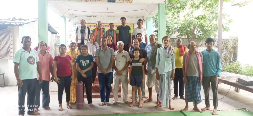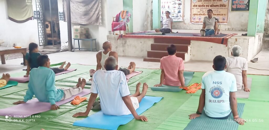 महापल्ली:- पूर्वांचल स्थित बटमूल आश्रम महाविद्यालय परिसर में संचालनालय आयुष रायपुर छत्तीसगढ़ शासन के आदेशानुसार एवं जिला आयुर्वेद अधिकारी रायगढ़ डॉ.मीरा भगत के मार्गदर्शन में आयुष्मान आरोग्य मंदिर महापल्ली एवं बटमूल आश्रम कॉलेज के राष्ट्रीय सेवा योजना इकाई के संयुक्त तत्वावधान में महाविद्यालय के प्राचार्य डॉ. पी.एल.पटेल के संरक्षण एवं रासेयो कार्यक्रम अधिकारी डॉ.कृष्णा गुप्ता के नेतृत्व में पंचदिवसीय योग प्रशिक्षण शिविर 17 जून से 21 जून तक आयोजित किया गया। प्रतिदिन योग प्रशिक्षिका कुमारी वर्षा प्रधान एवं आयुष्मान आरोग्य मंदिर महापल्ली के प्रभारी चिकित्सक डॉ सुभाष चन्द्र झा द्वारा प्रतिदिन प्रोटोकॉल के अनुसार आसन एवं प्राणायाम का अभ्यास कराया गया। जिसमें महाविद्यालय के प्राचार्य एवं स्टाफ रासेयो कार्यक्रम अधिकारी, रासेयो स्वयंसेवक पूर्वांचल के गणमान्य नागरिक एवं भारी संख्या में बालक एवं बालिकाओं की सहभागिता रही। जिसमें श्री अशोक निषाद (बीडीसी), श्री दशरथ पटेल, श्री रामावतार अग्रवाल, डॉ. कृष्णा गुप्ता, त्रिलोचन बरेठ, सुश्री गंगा सिदार, श्री विद्यानंद सिदार, श्री संपत पटेल, श्री कृष्णलाल गुप्ता, श्री आनन्द अग्रवाल, श्री अरूण सा, श्री ठाकुरदत्त गुप्ता, बनुजा गुप्ता, श्री प्रदीप गुप्ता, श्रीमती ललिता गुप्ता, श्रीमती प्रेमशीला गुप्ता, श्री प्रेमानन्द श्री हरिप्रसाद बारिक, श्री भोगीलाल भोय एवं रासेयो स्वयंसेवक प्रशांत मेहर, सूरज चौहान, संध्या सिदार, बासंती राठिया, मुकुंद माझी, यमुना मेहर, सुशीला यादव की सक्रिय उपस्थिति रही। उद्बोधन की कड़ी में महाविद्यालय के प्राचार्य डॉ. पी. एल. पटेल , मुख्य अतिथि श्री अशोक निषाद, कोषाध्यक्ष रामावतार अग्रवाल एवं श्री भोगी लाल भोय ने योग के महत्व पर प्रकाश डालते हुए अपना अपना अनुभव प्रकट किया। कार्यक्रम का संचालन करते हुए डॉ सुभाष चन्द्र झा ने उपस्थित लोगों को प्रतिदिन योग करने के लिए कहा। रा से यो कार्यक्रम अधिकारी डॉ. कृष्णा गुप्ता ने पांच दिवसीय योग शिविर में शामिल होने के लिए उपस्थित सभी लोगों के प्रति आभार व्यक्त किया।
