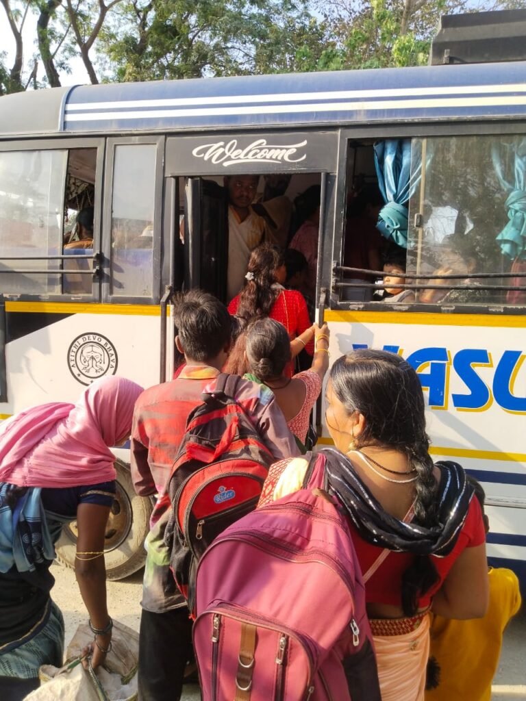 बस की जीतनी सीट है उसके डबल यात्रियों को भेड़ बकरी की तरह ठूस दिया जा रहा है और शासन प्रशासन आँख बंद करके किसी बड़े अनहोनी की इंतजार कर रहा है, ऐसे में कभी बस दुर्घटना हो जाती है तो स्थिति भयावह होगा जबसे राज्य परिवहन बंद हुई है तबसे निजी बस संचालको की दादागिरी बढ़ती जा रही है और आम जनता को दुर्व्यवहार सहते हुए बस में यात्रा करना पड़ रहा है