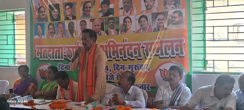 तमनार रायगढ़ / लैलूंगा विधानसभा में लोकसभा चुनाव के बेहतरीन परिणाम भारतीय जनता पार्टी के आने के बाद की पहली मतदाता कार्यकर्ता अभिनंदन कार्यक्रम तमनार करण भवन में रायगढ़ लोकसभा सासंद राधेश्याम राठिया, राज्यसभा सांसद देवेंद्र प्रताप सिंह ,पूर्व ससंदीय सचिव पूर्व विधायक सुनीति राठिया,प्रदेश उपाध्यक्ष महिला मोर्चा के सुषमा खलखो के मुख्य आथित्य मंडल अध्यक्ष जतिन साव, अश्विनी पटनायक वरिष्ठ पदाधिकारी सहित लैलूंगा विधानसभा मंडल एवं जिले की कार्यकर्ताओं की गरिमामय उपस्थिति में सम्पन्न हुआ जिसमें अतिथियों द्वारा लोकसभा चुनाव में प्रचंड बहुमत से जिताने में मतदाता कार्यकर्ताओ को हार्दिक शुभकामनाएं धन्यवाद देते हुए आगे भी संगठन को मजबूत बनाने के साथ साथ जनता के मांग उनके छोटे छोटे जरूरत चाहे तहसील हो या जिला विभागीय थाना हो या अन्य सहयोग जो जनता भारतीय जनता पार्टी के सम्मानीय कार्यकर्ता विधायक सासंद मंत्री से अपेक्षा करती हैं हमें उनके जरूरत को पूरी करने की पूरी प्रयास करनी है पूरे व्यवहार के साथ आप सभी सम्मानीय मंडल के साथ साथ जिले के पदाधिकारियों को फिर से प्रणाम करता हूँ आप सब मोदी जी के गारंटी संदेश को हमारे छत्तीसगढ़ के मुखिया मुख्यमंत्री आदरणीय विष्णुदेव साय जी मार्गदर्शन को अपने क्षेत्र में जन जन तक पहुँचाया जिसके लिए लिए हमारा सरकार छत्तीसगढ़ में आया यह कथन दोनो सासंद की रही वहीँ पर पूर्व विधायक पूर्व संसदीय सचिव सुनीति राठिया ने कहा चुनाव हार जीत के रहते हैं पर संगठन में अपनी सक्रियता ईमानदारी से निभाना ही संगठन के मुख्य उद्देश्य की पूर्ति करना हर कार्यकर्ता के धर्म है आगे हम मजबूत हो यही प्रयास रहनी चाहिए सभी लैलूंगा विधानसभा के वरिष्ठ पदाधिकारी सहित मंडल अध्यक्ष जतिन साव एवं सदस्यों ने भी अपनी बातें रखी मंच संचालन विनायक पटनायक युवा मोर्चा द्वारा किया गया जिस गरिमामय अवसर भारतीय जनता पार्टी के कार्यकर्ताओं एवं मतदाता जनता की उपस्थिति सम्मानिय रही l