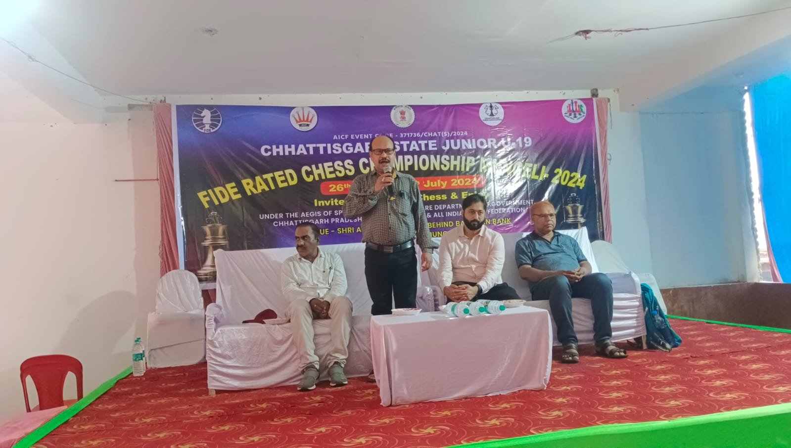 मुंगेली l आदित्य मंगलम में छत्तीसगढ़ स्टेट जूनियर वर्ग (अंडर -19) फीडे रेटेड स्टेट चैंपियनशिप का उदघाटन हुआ। उदघाटन कार्यक्रम के मुख्य अतिथि जिला शिक्षा अधिकारी चंदकुमार धृतलहरे थे। कार्यक्रम की अध्यक्षता छत्तीसगढ़ प्रदेश शतरंज संघ के राज्य सचिव हेमन्त खुटे ने की।