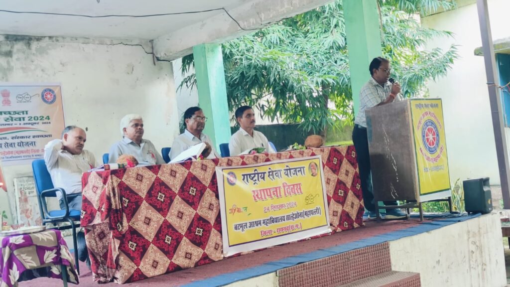 महाविद्यालय के प्राचार्य डॉ. पी एल पटेल के संरक्षण एवं पूर्व कार्यक्रम अधिकारी द्वै प्रो पी के कापड़ी व प्रो पी के गुप्ता के मार्गदर्शन में राष्ट्रीय सेवा योजना के कार्यक्रम अधिकारी डॉ. कृष्णा गुप्ता के कुशल नेतृत्व में रासेयो एक दिवसीय शिविर के साथ स्थापना दिवस का आयोजन किया गया। स्वच्छता ही सेवा 2024 अभियान के तहत बटमूल कॉलेज के रासेयो इकाई द्वारा 24 सितंबर को प्रातः 8:00 बजे से महाविद्यालय परिसर की साफ सफाई करने के उपरांत स्वयं सेवकों द्वारा स्वभाव स्वच्छता- संस्कार स्वच्छता के प्रति लोगों में जागरूकता लाने के लिए महाविद्यालय परिसर से महापल्ली के गली चौक चौराहों में गिरे हुए सिंगल युज प्लास्टिक एवं अन्य कचरों को रासेयो स्वयं सेवकों द्वारा उठाते हुए स्वच्छता की संदेश देते हुए रैली निकाली गई। भोजन पश्चात दोपहर 2:00 बजे महाविद्यालय संचालन समिति के अध्यक्ष श्री एन आर प्रधान, महाविद्यालय के प्राचार्य एवं प्राध्यापकों द्वारा राष्ट्रीय सेवा योजना के प्रतीक पुरुष स्वामी विवेकानंद जी के छायाचित्र पर दीप प्रज्वलन एवं माल्यार्पण कर स्थापना दिवस का शुभारंभ किया गया। तत्पश्चात मंचस्थ अतिथियों का एन एस एस बैच एवं पुष्पगुच्छ से स्वागत किया गया। रासेयो के संरक्षक महाविद्यालय के प्राचार्य डॉ. पी एल पटेल एवं पूर्व कार्यक्रम अधिकारी द्वै प्रो पी के कापड़ी व प्रो पी के गुप्ता को कार्यक्रम अधिकारी द्वारा अंगवस्त्र एवं श्रीफल से सम्मानित किया गया। कार्यक्रम का संचालन करते हुए रा से यो कार्यक्रम अधिकारी डॉ कृष्णा गुप्ता ने राष्ट्रीय सेवा योजना के बारे में तथा उसके महत्व को विस्तार से बताया। स्वयंसेवक निकिता गुप्ता, यमुना किसान, सावित्री राठिया एवं उनके साथियों ने एन एस एस गीत एवं नृत्य प्रस्तुत की। इस अवसर पर वरिष्ठ स्वयंसेवकों को बी प्रमाण पत्र का वितरण किया गया। इस अवसर पर पूर्व कार्यक्रम अधिकारी प्रो पीके कपड़ी ने अपने कार्यकाल के अनुभव को बताते हुए वर्तमान कार्यक्रम अधिकारी डॉ कृष्णा गुप्ता के कार्य कुशलता की भूरि भूरि प्रशंसा की। पूर्व कार्यक्रम अधिकारी प्रो पीके गुप्ता ने रासेयो गीत गाकर अपना विचार व्यक्त किया। प्राचार्य डॉ पी एल पटेल ने एन एस एस स्थापना दिवस के अवसर पर स्वच्छता अभियान में स्वयंसेवकों की भागीदारी के महत्व को बताया। अंत में महाविद्यालय संचालन समिति का अध्यक्ष श्री एन आर प्रधान ने अपना आशीर्वचन प्रदान किया। कार्यक्रम का संचालन कार्यक्रम अधिकारी डॉ के के गुप्ता एवं आभार व्यक्त प्रो श्रीमती स्मिता पण्डा ने किया। उक्त अवसर पर महाविद्यालय संचालन समिति का अध्यक्ष श्री एन आर प्रधान, महाविद्यालय के प्राचार्य डॉ. पी. एल. पटेल, वरिष्ठ प्राध्यापक प्रो. पी