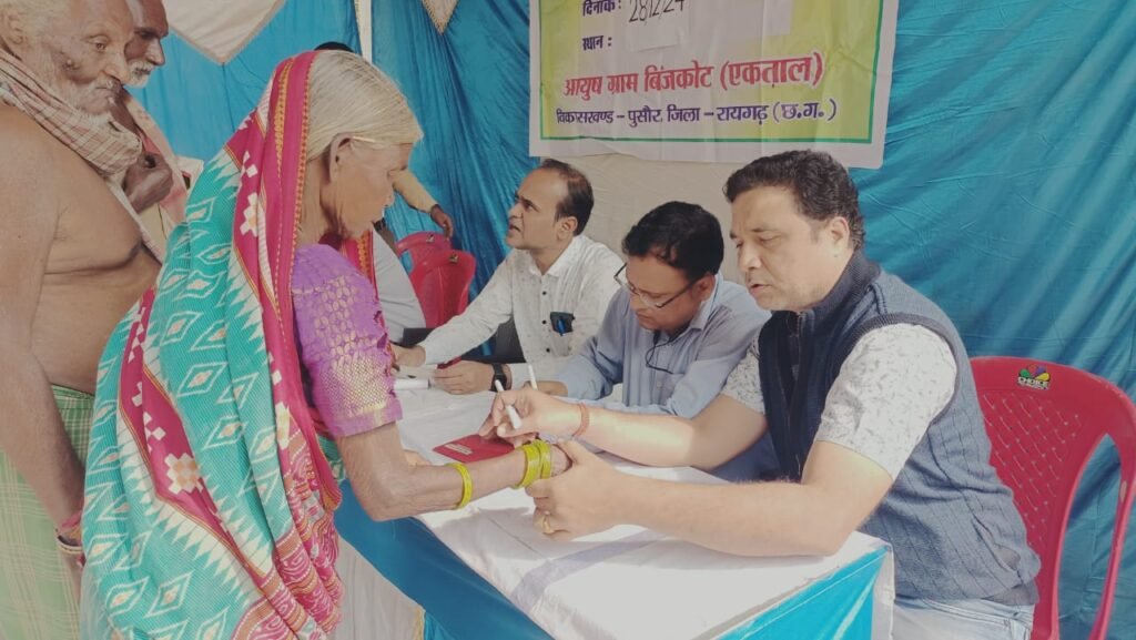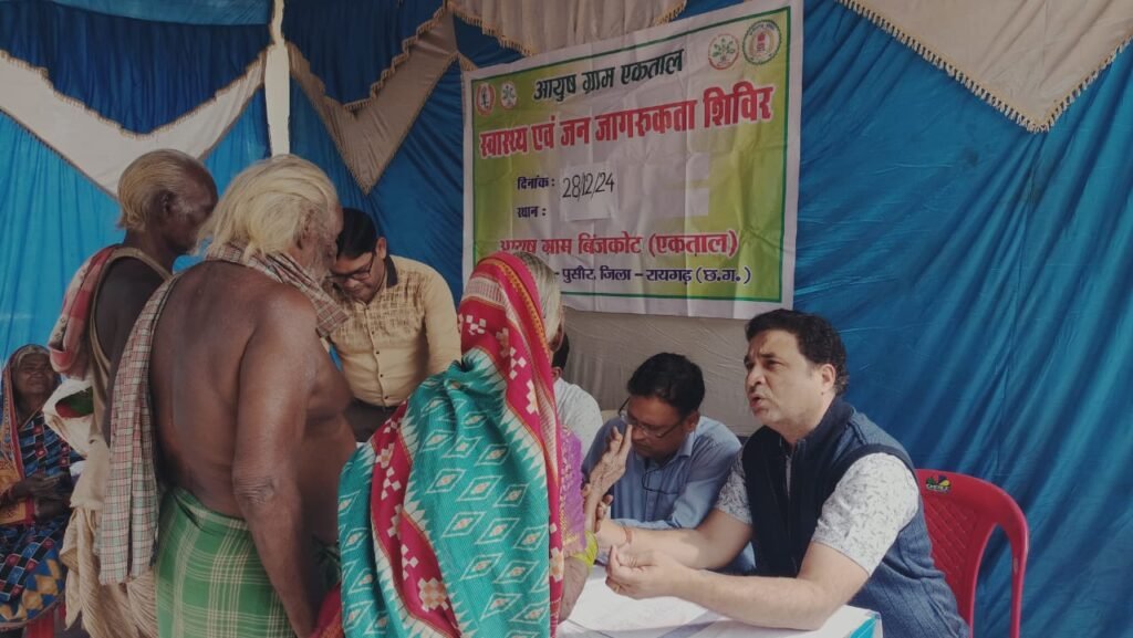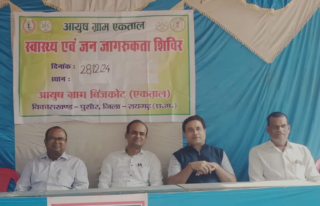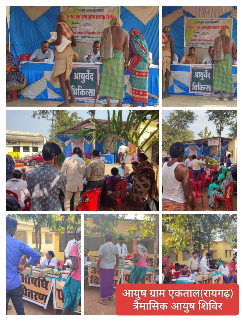 रायगढ़ /आज दिनाँक 28/12/24 को रायगढ़ के पुसौर विकासखंड के आयुष ग्राम एकताल में जिला आयुष अधिकारी डॉ मीरा भगत मैडम के दिशानिर्देशन में त्रेमासिक स्वास्थ्य शिविर का आयोजन किया गया जिसमें 158 मरीजों का परीक्षण करते हुए उन्हें निःशुल्क आयुर्वेद औषधियां प्रदान की गईं एवं नशामुक्ति से संबंधित जनजागरूकता प्रदान की गई साथ ही निःशुल्क रक्त जांच की गई एवं वय वंदना कार्ड बनाये गए।