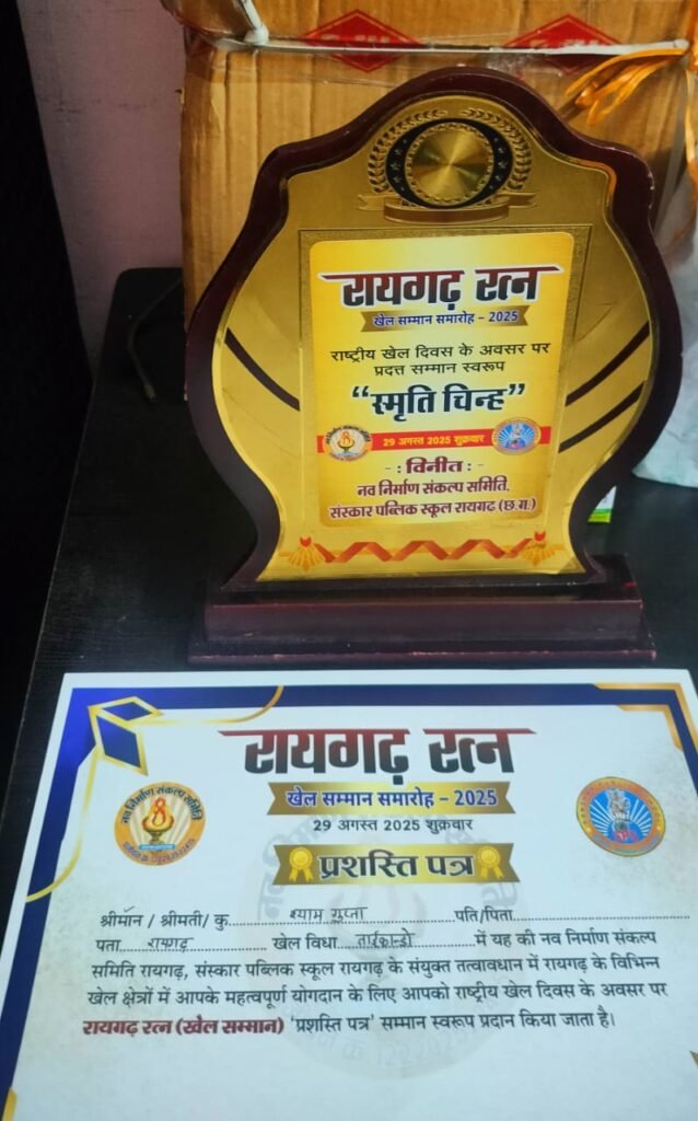 रायगढ़ खेल रत्न सम्मान से सम्मानित हुए अंतराष्ट्रीय खिलाड़ी कोच रेंशी श्याम गुप्ता