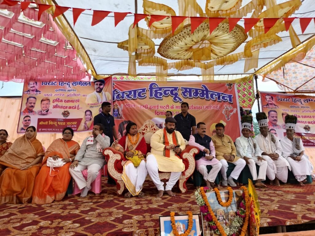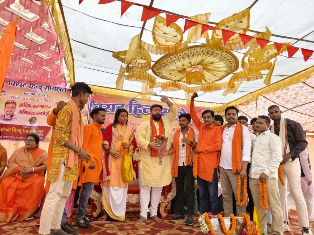 रायगढ़/सारंगढ़। ग्राम गोडम में आयोजित भव्य विराट हिंदू महासम्मेलन में उस समय वातावरण धर्ममय और ऊर्जामय हो उठा जब गुरुदेव अजय उपाध्याय महाराज और हिंदू हृदय सम्राट प्रबल प्रताप सिंह जूदेव ने मंच से धर्मरक्षा का प्रखर संदेश दिया।