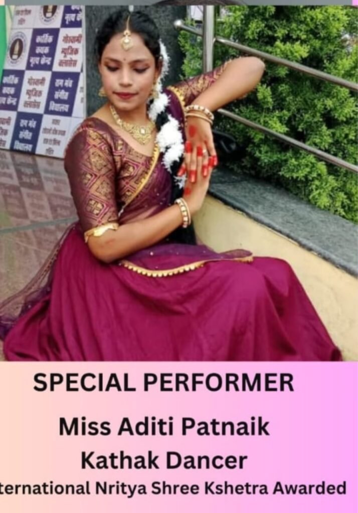 रायगढ़ छत्तीसगढ़ / अंतरराष्ट्रीय नृत्य श्री पुरस्कृत छत्तीसगढ़ की प्रतिभाशाली कथक नृत्यांगना अदिति पटनायक ने एक बार फिर अपने उत्कृष्ट नृत्य प्रदर्शन से प्रदेश का नाम रोशन किया। नागपुर में आयोजित “फैशन आइकॉन 2025” कार्यक्रम में अदिति ने विशेष अतिथि कलाकार के रूप में अपनी अद्भुत कथक नृत्य प्रस्तुति दी, जिसने पूरे सभागार को मंत्रमुग्ध कर दिया।