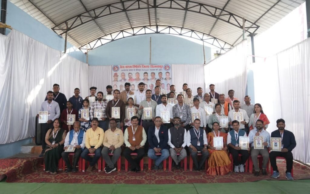 बिलासपुर। शहर के कमेटी हॉल में प्रेस रिपोर्टर क्लब की बिलासपुर इकाई द्वारा आई-कार्ड वितरण एवं सम्मान समारोह का भव्य आयोजन किया गया। कार्यक्रम में बड़ी संख्या में पत्रकारों की गरिमामयी उपस्थिति रही। समारोह के मुख्य अतिथि प्रेस रिपोर्टर क्लब के प्रदेश अध्यक्ष संजय सोनी रहे। विशिष्ट अतिथियों में राजेश चौथवानी, यमुना प्रसाद गुप्ता, प्रदेश उपाध्यक्ष गौतम बाल बोंद्रे तथा जिला अध्यक्ष विजय साहू मंचासीन रहे।