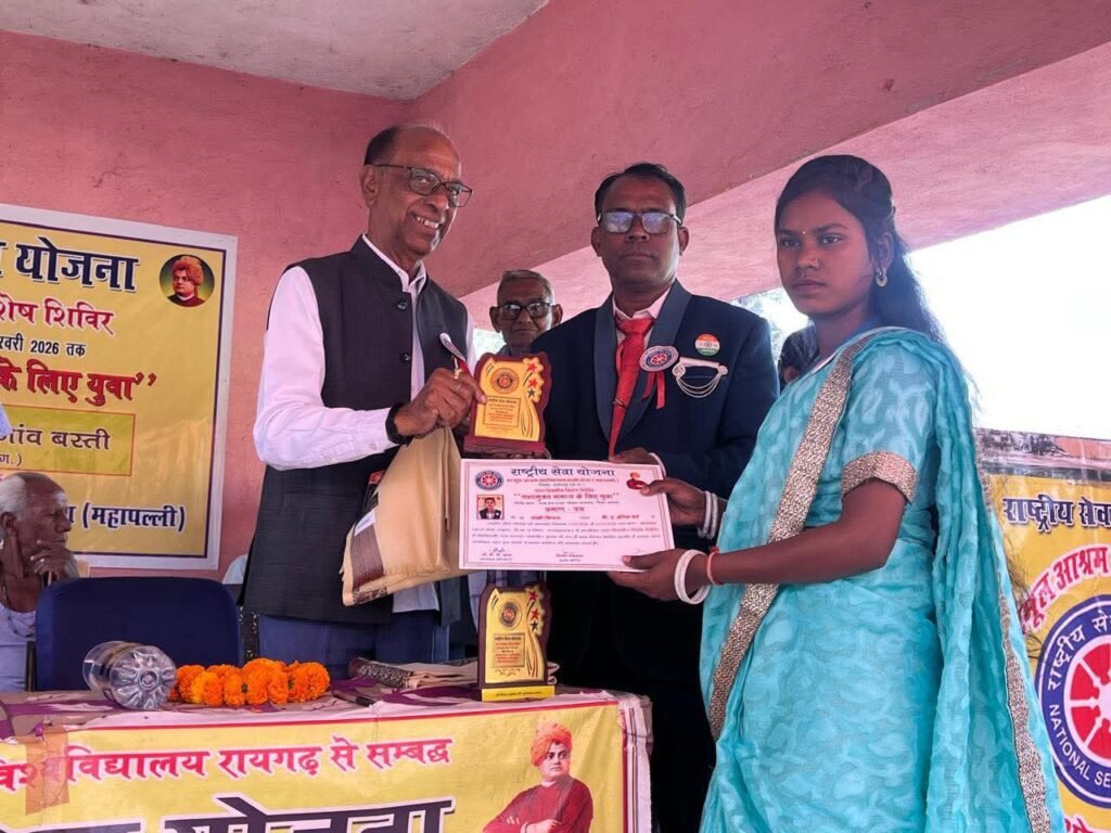 रायगढ़ – शहीद नंदकुमार पटेल विश्वविद्यालय रायगढ़ से संबद्ध बटमूल आश्रम महाविद्यालय साल्हेओना महापल्ली के प्राचार्य डॉ. पी. एल. पटेल, महाविद्यालय समिति संचालन समिति के अध्यक्ष एन.आर.प्रधान जी के मार्गदर्शन एवं राष्ट्रीय सेवा योजना कार्यक्रम अधिकारी डॉ. के. के. गुप्ता के कुशल नेतृत्व में बटमूल आश्रम महाविद्यालय के राष्ट्रीय सेवा योजना इकाई के साथ दिवसीय विशेष शिविर का आयोजन जामगांव के शासकीय प्राथमिक विद्यालय परिसर में 17 फरवरी से 23 फरवरी 2026 तक ग्राम जामगांव में किया गया। रासेयो शिविर के समापन समारोह रायगढ़ विधानसभा क्षेत्र के पूर्व विधायक विजय अग्रवाल जी के मुख्य आतिथ्य में सम्पन्न हुआ। सर्वप्रथम मुख्य अतिथि एवं मंचस्थ अतिथियों द्वारा युवाओं के प्रेरणा स्रोत स्वामी विवेकानंद जी के छायाचित्र के समक्ष दीप प्रज्वलित एवं माल्यार्पण कर कार्यक्रम का शुभारंभ किया। तत्पश्चात मंचस्थ अतिथियों का एन.एस.एस. बैच लगाकर एवं पुष्पगुच्छ और माला से स्वागत अभिनंदन किया गया। स्वयंसेवक छात्राओं द्वारा स्वागत गीत एवं सामूहिक स्वागत नृत्य की प्रस्तुति दी गई। उसके बाद कार्यक्रम अधिकारी डॉ के के गुप्ता द्वारा मुख्य अतिथि पूर्व विधायक विजय अग्रवाल जी का साल एवं स्मृति चिन्ह भेंट कर सम्मानित किया। कार्यक्रम अधिकारी डॉ. के के गुप्ता ने सात दिवसीय विशेष शिविर प्रतिवेदन में कार्य योजना के तहत किए गए कार्यों को विस्तार से बताया। मुख्य अतिथि पूर्व विधायक विजय अग्रवाल ने समापन शिविर को संबोधित करते हुए कहा कि एनएसएस शिविर में छात्र छात्राओं को स्वच्छता का महत्व बताया और कहा कि स्वच्छ भारत में ही स्वच्छ भारत निवास करता है अतः हम सभी को स्वच्छता को अपनी दिनचर्या का अभिन्न अंग बना लेना चाहिए। उन्होंने कहा कि राष्ट्रीय सेवा योजना विद्यार्थियों में सेवा अनुशासन एवं सामाजिक उत्तरदायित्व की भावना विकसित करती है। उन्होंने स्वयंसेवकों को समाज हित में निष्ठा पूर्वक कार्य करने तथा शिविर की गतिविधियों से अधिकतम लाभ उठाने हेतु प्रेरित किया। कार्यक्रम अधिकारी डॉ. के के गुप्ता के नेतृत्व में शिविरार्थियों का अनुशासन एवं समाज सेवा के प्रति समर्पण अत्यंत प्रेरणादायी रहा। ऐसे शिविर विद्यार्थियों में सेवा, संस्कार और नेतृत्व क्षमता का विकास करते हैं तथा समाज के प्रति जिम्मेदारी का भाव जागृत करते हैं। इस अवसर पर महाविद्यालय के प्राचार्य डॉ पी एल पटेल ने विशेष शिविर आयोजन के उद्देश्य को बताया। महाविद्यालय संचालन समिति के अध्यक्ष श्री एन आर प्रधान, सचिव दशरथ गुप्ता, मुरारी अग्रवाल, सरपंच प्रमोद कुमार चौहान, प्यारीलाल गुप्ता, संतोष राम चौहान ने आशीर्वचन प्रदान किया। सहायक कार्यक्रम अधिका