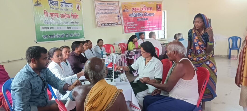 घरघोड़ा क्षेत्र के ढोरम में स्वास्थ्य जांच शिविर आयोजित, विशेषज्ञ डॉक्टरों ने की नि:शुल्क जांच