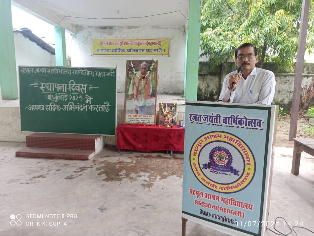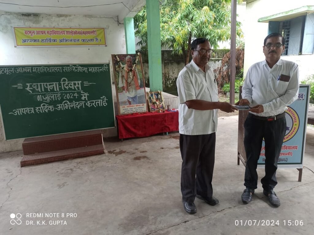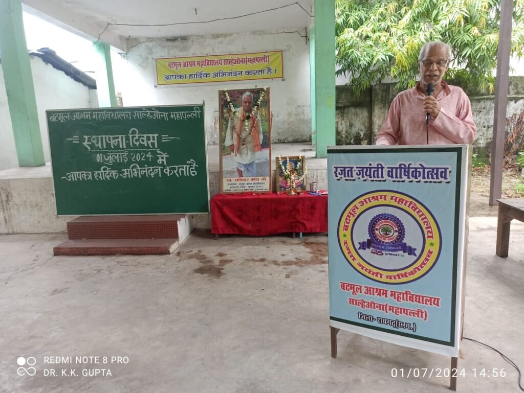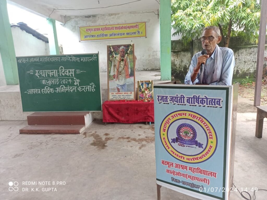 महापल्ली का 26 वां स्थापना दिवस 1 जुलाई 2024 को दोपहर 2:00 बजे मनाया गया। कार्यक्रम की शुरुआत उपस्थित अतिथियों महाविद्यालय संचालन समिति के अध्यक्ष एन आर प्रधान कोषाध्यक्ष रामावतार अग्रवाल, सचिव दशरथ गुप्ता, सदस्य टेकचंद गुप्ता, महाविद्यालय के प्राचार्य डॉ पीएल पटेल एवं संपूर्ण स्टाफ के द्वारा वाक् देवी मां शारदा के छायाचित्र के सम्मुख दीप प्रज्वलित एवं माल्यार्पण सह पुष्पर्पित कर किया गया साथ ही महाविद्यालय के संस्थापक स्व. शशिधर पंडा जी के प्रतिमा के सम्मुख दीप प्रचलित एवं माल्यार्पण कर उन्हें याद किया गया। कार्यक्रम का संचालन करते हुए राष्ट्रीय सेवा योजना के कार्यक्रम अधिकारी डॉक्टर कृष्णा गुप्ता ने महाविद्यालय के स्थापना से संबंधित संक्षिप्त जानकारी प्रदान किया। उद्बोधन की कड़ी में सर्वप्रथम महाविद्यालय के वरिष्ठ प्राध्यापक प्रो पीके कापड़ी ने अपने 25 वर्षों के अनुभवों के आधार पर महाविद्यालय के दशा और दिशा पर अपने विचार व्यक्त किया, तत्पश्चात महाविद्यालय के प्राचार्य डॉ पीएल पटेल ने कहा कि महाविद्यालय अपने रजत जयंती वर्ष पूर्ण कर स्वर्ण जयंती वर्ष की ओर प्रवेश कर रहा है। इस अवसर पर सेवानिवृत शिक्षक आनंद राम प्रधान, सत्यव्रत पंडा, महाविद्यालय संचालन समिति के सचिव दशरथ गुप्ता, कोषाध्यक्ष रामावतार अग्रवाल एवं अध्यक्ष एन आर प्रधान ने महाविद्यालय के स्थापना से लेकर 25 वर्ष पूर्ण होते तक महाविद्यालय में जो उतार चढ़ाव हुए हैं उस पर अपना अपना विचार व्यक्त करते हुए आगे एकजुट होकर महाविद्यालय के विकास के लिए अपने-अपने क्षमतानुसार निरंतर सहयोग करते रहने की बात कही। इस अवसर पर महाविद्यालय के वरिष्ठ प्राध्यापक प्रो पी के कापड़ी के सेवा को 25 वर्ष पूर्ण होने के उपलक्ष्य में उन्हें महाविद्यालय शिक्षण समिति के द्वारा साल एवं श्रीफल भेंटकर विशेष सम्मान किया गया। इस अवसर पर शिक्षण समिति के अध्यक्ष एन आर प्रधान, कोषाध्यक्ष रामावतार अग्रवाल, सचिव दशरथ गुप्ता, सदस्य टेकचंद्र गुप्ता, महाविद्यालय के प्राचार्य डॉ पी एल पटेल, वरिष्ठ प्राध्यापक प्रो पी के कापड़ी, प्रो पीके गुप्ता, डॉ व्ही के गुप्ता, डॉ कृष्णा गुप्ता, डॉ गीता देवांगन, प्रो नीलकंठ निषाद, निशांत पंडा, त्रिलोचन बरेठ, सुमन किसान, यमुना मेहर, सुशीला यादव एवं अतिथियों में सत्यव्रत पंडा, सेवानिवृत शिक्षक हेमसागर बेहरा, लखपति साव, आनंद राम प्रधान, भ्रमर प्रसाद भोय, दशरथी साहू, भीष्म देव भोय, शेषचरण गुप्ता एवं उमाशंकर गुप्ता की उपस्थिति रही। अंत में कार्यक्रम उपस्थित अतिथियों के प्रति आभार व्यक्त प्रो विक्रांत गुप्ता ने किया।